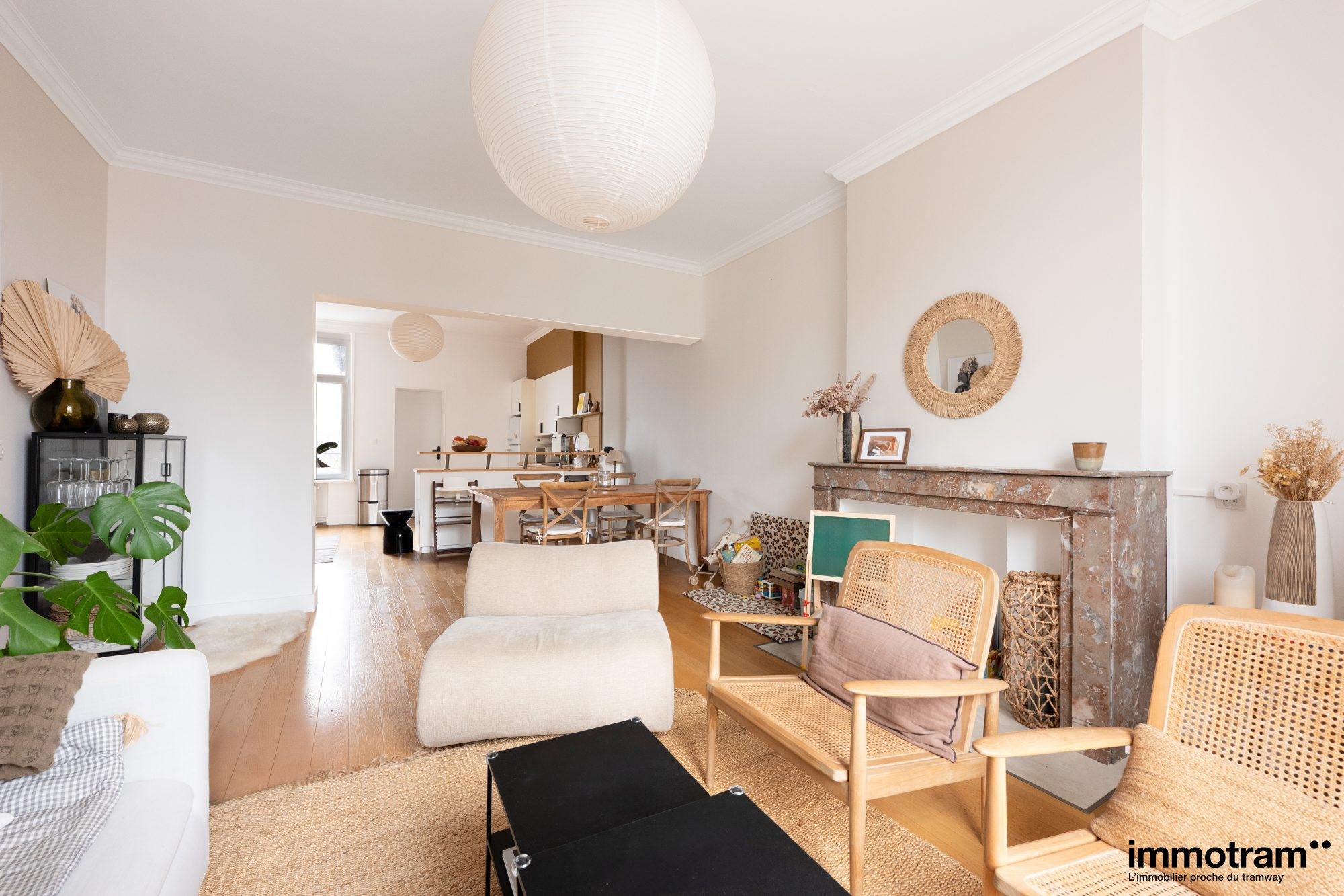 À deux pas du tramway, au coeur d'un immeuble de caractère, Immotram vous propose en exclusivité un bel appartement de charme, entièrement rénové avec soin, développant environ 90 m².