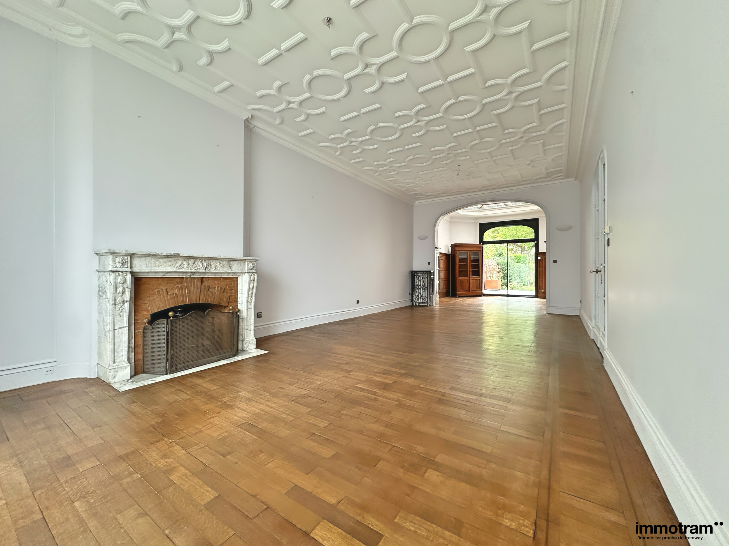 Dès l'entrée, le charme opère :Un vaste hall avec vestiaire et commodités distribue un magnifique séjour d'environ 60 m², sublimé par une cheminée, un parquet d'origine, ainsi que de superbes boiseries, vitraux et moulures typiques des années 1920.Une atmosphère unique, chaleureuse et raffinée.