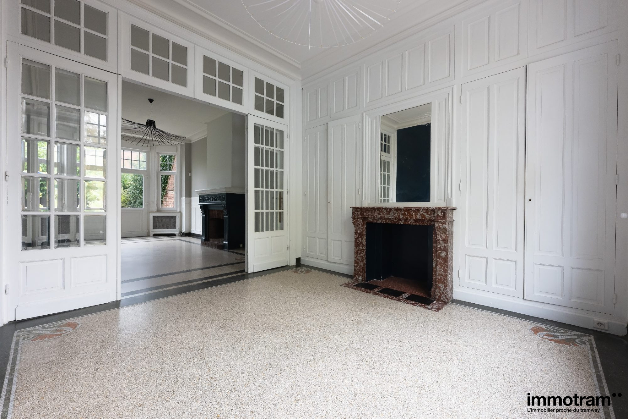 Roubaix Place du Travail, Laissez vous séduire par cette large maison en double distribution, des années 30 de plus de 170 m² aux cachets préservés. Elle se compose au rez de chaussée d'un hall d'entrée, d'un bel espace de vie de plus de 45 m² avec une cheminée feu de bois, un bow-window et granito au sol, avec sa belle cuisine dînatoire attenante, le tout ouvert par de larges baies vitrées sur le beau jardin. Sur ce même niveau, vous trouverez un bureau, à l'étage, sur le même palier, vous serez conquis par ses 4 belles chambres et ses 2 salles de bains, le tout sur le même palier. Elle dispose également d'une grande cave de 80 m², et un superbe jardin de plus de 150 m² sans vis à vis.